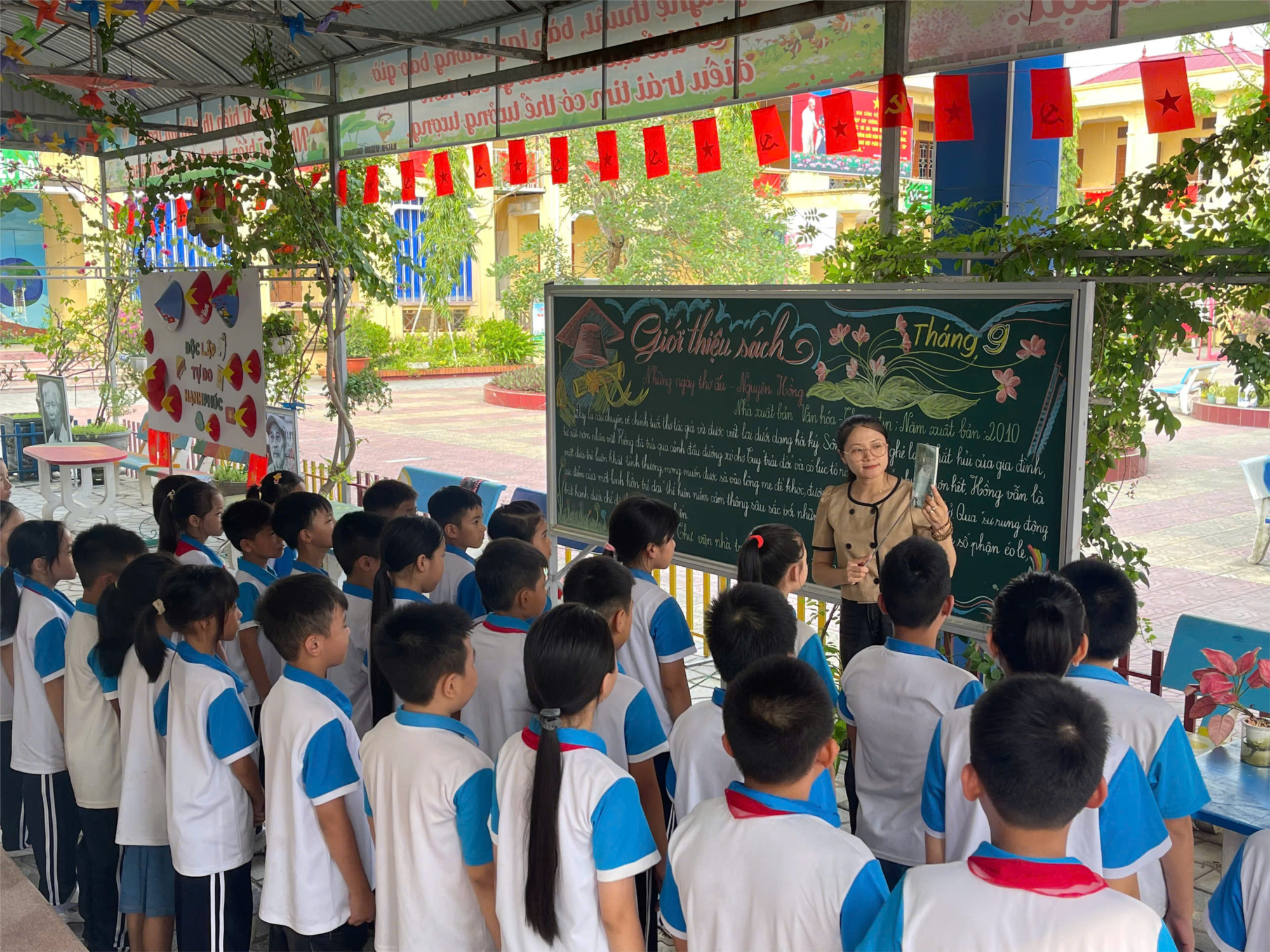 Tại khuôn viên Thư viện xanh của trường – nơi có những băng ghế đá sạch sẽ và những kệ sách mở đầy màu sắc. Tại đây, các em học sinh được chia thành các nhóm nhỏ, mỗi nhóm cùng nhau đọc một vài đoạn trong cuốn sách. Dưới sự hướng dẫn cách phân tích những chi tiết đắt giá, gợi mở những câu hỏi như: “Tại sao cậu bé Hồng lại tha thứ cho mẹ mình?” hay “Tình yêu thương có thể vượt qua định kiến xã hội như thế nào?” các em học sinh được khám phá từng lớp nghĩa sâu xa trong tác phẩm.